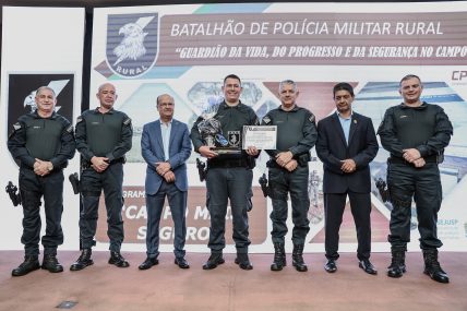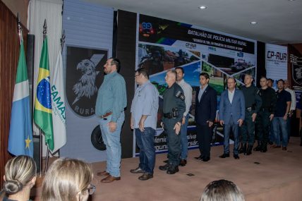 Durante a solenidade, foram entregues homenagens às autoridades e policiais destaques que contribuíram para a consolidação do CP-Rur e do BPMRu. O evento contou com a presença do Vice-Governador, do Secretário-Adjunto de Estado de Justiça e Segurança Pública e do Comandante-Geral da PMMS, que anunciaram um importante avanço para a unidade, com o investimento de 36 novas viaturas elevou o patamar da capacidade operacional, saltando de 20 mil ações de policiamento rural em 2024 para 35 mil ações em 2025, o que representa 75% de aumento do policiamento preventivo, um avanço histórico.