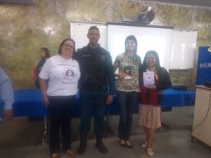 A equipe tratou sobre o papel da Polícia Militar no enfrentamento à violência doméstica e familiar por meio do Programa Mulher Segura e ressaltou a importância do trabalho em rede para denunciar os crimes e proteger mulheres.