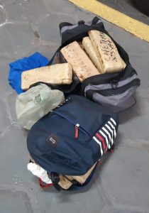 Um passageiro de 20 anos foi identificado como responsável pelas mochila. Ao serem abertas havia em seu interior diversos tabletes de maconha, que pesados totalizaram dezoito quilos e oitocentas gramas.