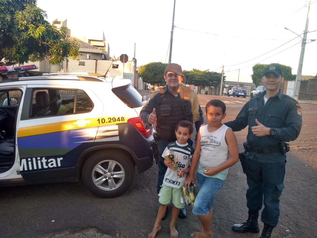 Polícia Militar, com o apoio de comerciantes, proporciona um dia especial para crianças em Camapuã