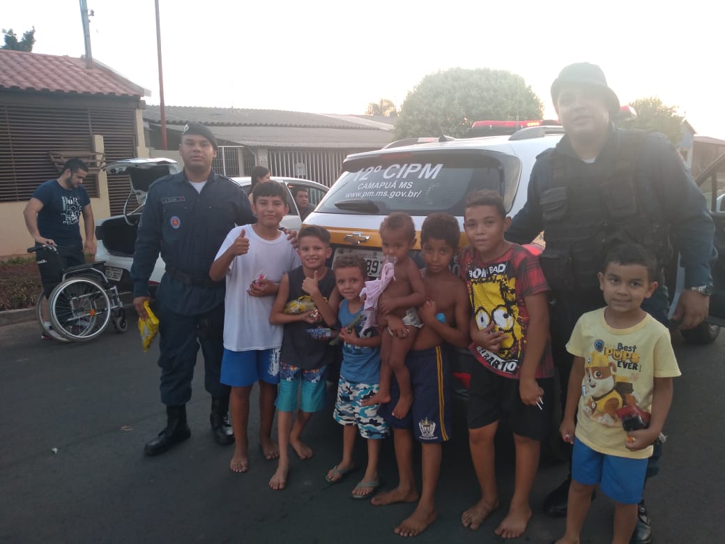 O “Dia das Crianças”, 12 de outubro, é uma data muito esperada por muitos pequenos, porém, nem todas as crianças recebem brinquedos nesta data, pensando nisso, o comandante do pelotão PM de Camapuã, 2º Tenente PM Souza, e demais policiais militares integrantes do pelotão elaboraram uma ação social com objetivo de levar alegria a essas crianças e, com o apoio do comércio local, receberam considerável quantidade de doações de brinquedos.