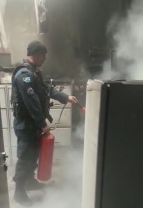 A equipe acionou o gerente da agência que providenciou a abertura e acesso ao local, tendo os policiais localizado o foco de incêndio, e então fazendo uso dos extintores existentes realizaram o combate as chamas até debelar o fogo por completo.