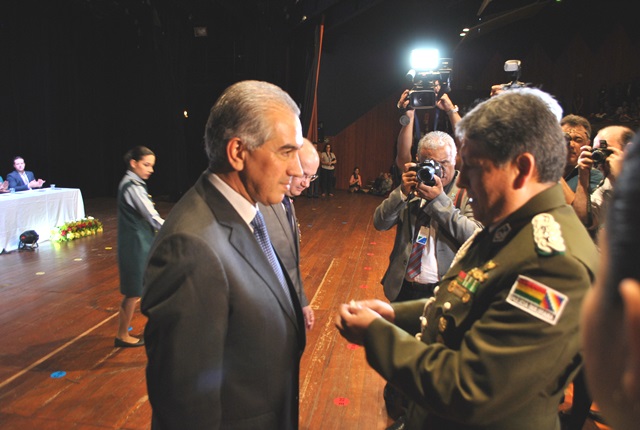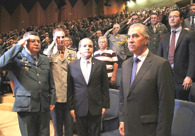 Em sua fala, o governador do Estado, Reinaldo Azambuja, informou que foram autorizadas, ainda hoje pela manhã, as vagas para realização do Curso de Formação de Cabos (CFC) e Curso de Formação de Sargentos (CFS) da PMMS.