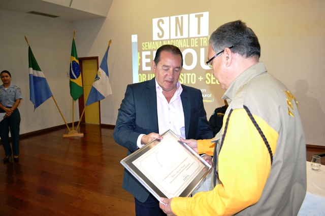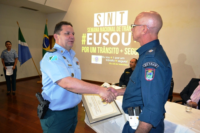 Ocasião onde o comandante Ten Cel QOPM Renato Tolentino Alves recepcionou os convidados, autoridades civis e militares e homenageou pessoas, profissionais da área de trânsito e organizações da sociedade civil que de maneira voluntária colaboram com ações de melhorias no trânsito de Campo Grande-MS.