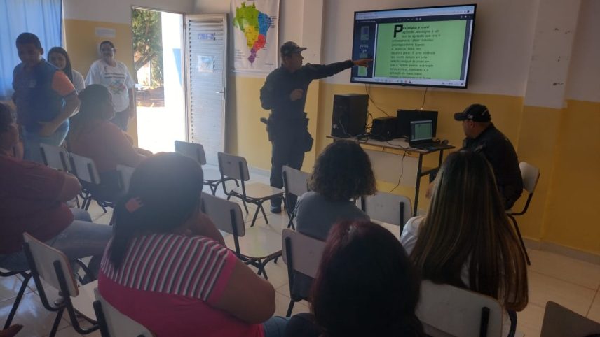 Água Clara – MS, no dia 5 de maio, os policiais militares do 3º Pelotão da 2º Cia do 2º Batalhão de Polícia Militar realizaram palestras na área rural de Água Clara.