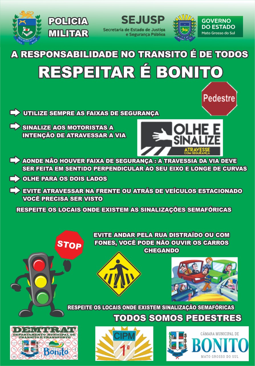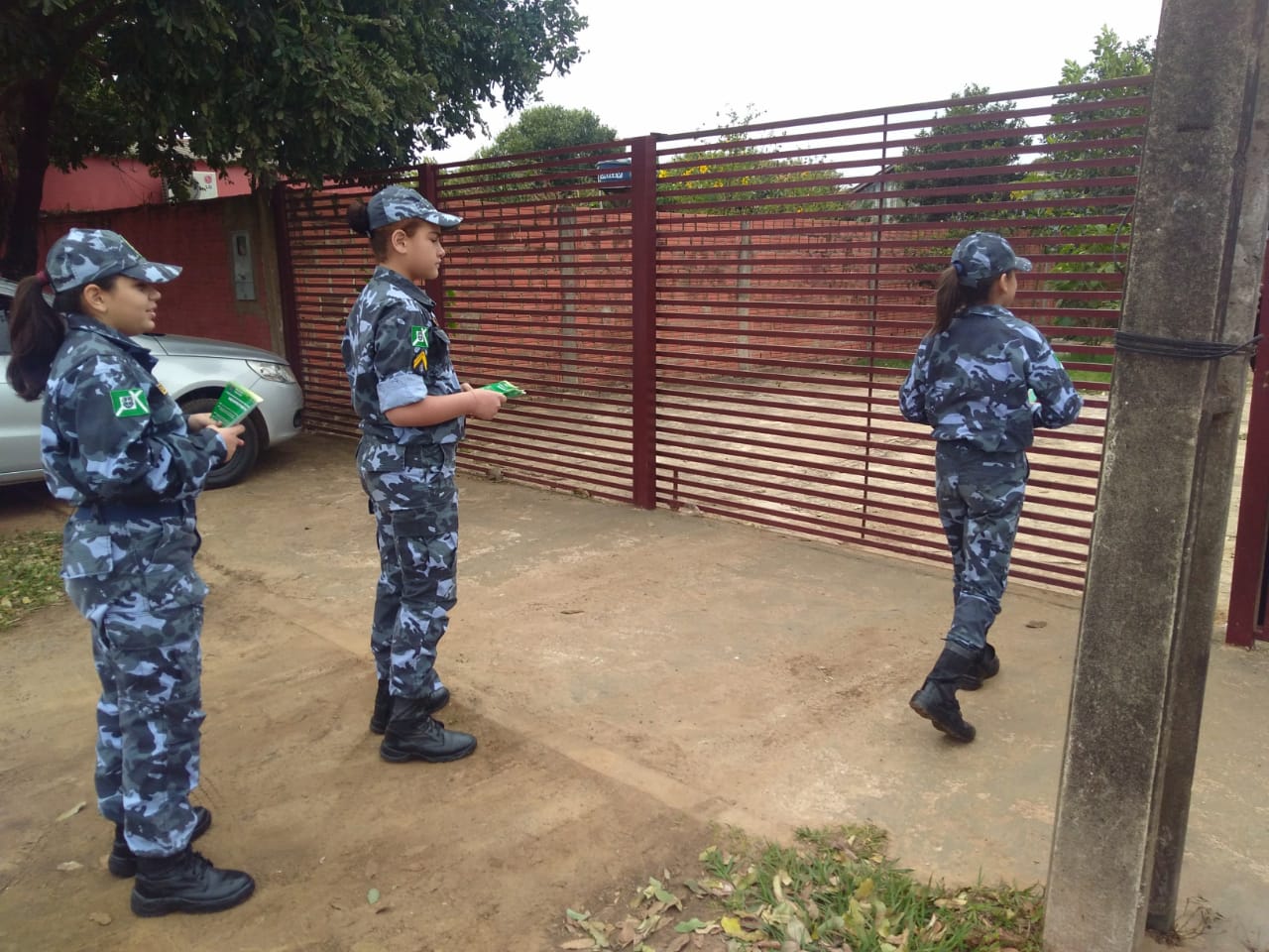 Bonito(MS) Nessa quarta-feira (24) a policia militar juntamente com os alunos do Instituto Mirim Ambiental realizaram visita as residências da Avenida Heron do Couto com intuito de dar orientações básicas na condição de pedestre de como se portar no trânsito.