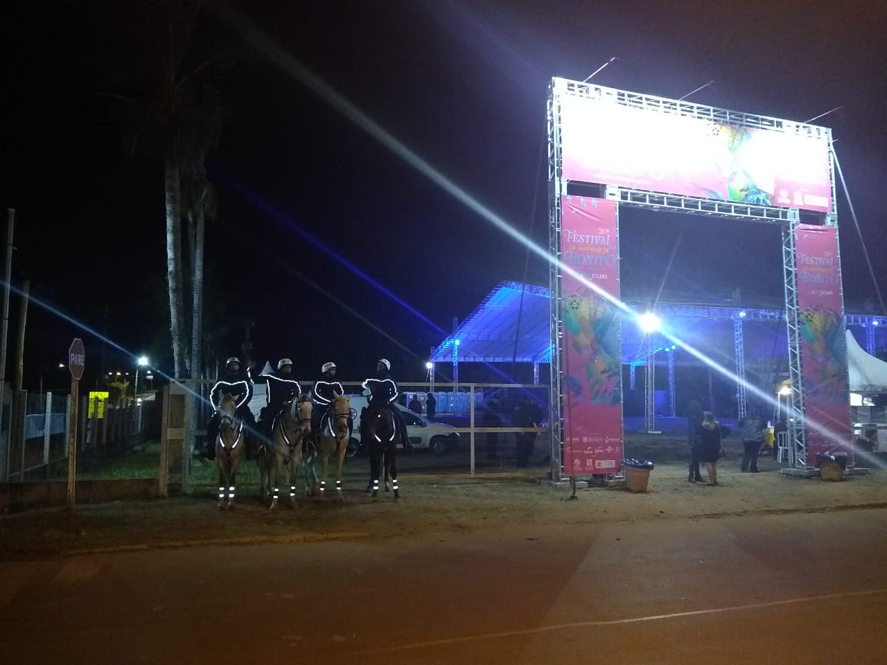 A policia militar aplicou um policiamento no evento com emprego de viaturas de quatro rodas, motocicletas, equipe tático móvel, equipe de cavaleiros da cavalaria. Para aplicação deste policiamento e com propósito de garantir a segurança do público do festival, a 1ªCIPM de Bonito contou com reforço de policiais e mais uma equipe policial com cavalos, vindos de outras unidades militares.
