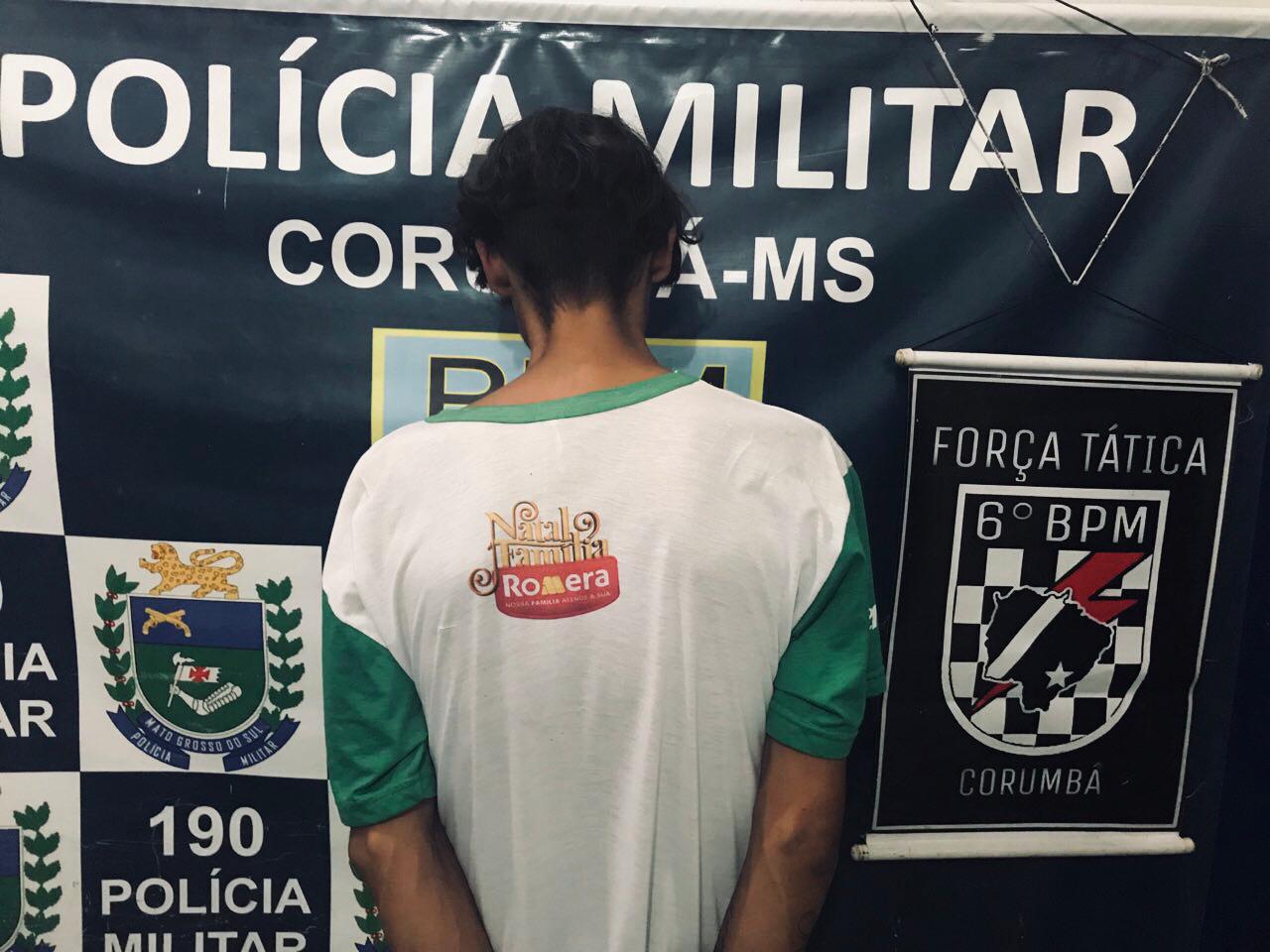 Corumbá (MS) – A guarnição de Rádio Patrulha, em rondas pelo Bairro Cristo Redentor,  por volta das 23h15, avistou um individuo (23), em atitude suspeita, ao ser abordado o mesmo foi checado via CIOPS, onde foi encontrada uma recaptura de evasão e um mandado de prisão em seu desfavor.