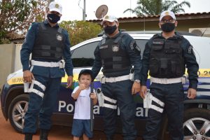 Coxim (MS) – Na tarde do dia (15/10) os Policiais Militares do Gtran (Grupamento de Trânsito) fizeram a alegria do grande fã da Polícia Militar, o Maicon Gabriel de apenas 4 anos.