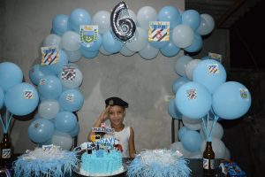 A festa do Davi que mora na Rua Getúlio Vargas no Bairro Senhor Divino de Coxim foi ao estilo da Polícia Militar, com bolo decorado, carros de polícia e símbolos da corporação.
