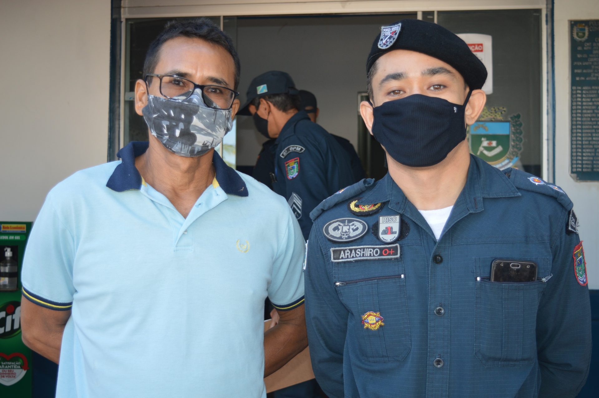 Foi realizado uma formatura com as guarnições de serviço e amigos, onde foi realizado o hasteamento da bandeira nacional, leitura de elogios e entrega de uma placa de agradecimento e um certificado pelos bons serviços prestados a Gloriosa Polícia Militar, desempenhado suas funções de servir e proteger os cidadãos.