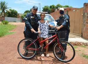 Polícia Militar de Coxim realiza sonho de adolescente que pedia uma bicicleta de presente de natal