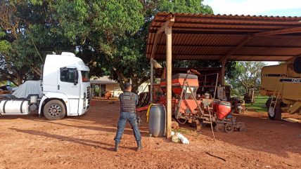 A Polícia Militar avançou até a sede da Fazenda, já em posse do trator e a camionete que haviam sido deixados na estrada.