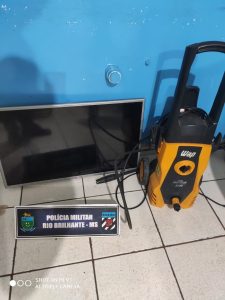 No imóvel foram encontrados R$ 390,00, quatro aparelhos de telefone celular, uma televisão LG, uma lavadora de alta pressão WAP, uma mala de viagem e uma MOTONETA HONDA BIZ.