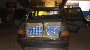 O condutor do automóvel (Fiat/Uno) de 44 anos de idade estava acompanhado de outro homem de 34 anos , no interior do veículo foram localizados 250 pacotes de cigarros contrabandeados do Paraguai, sem nenhuma documentação. Ambos relataram que levariam a mercadoria para Dourados, onde receberiam certa quantia pelo transporte. Diante dos fatos, o veículo e a mercadoria foram apreendidos e os envolvidos foram liberados, após qualificação em Boletim de Ocorrência.