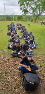 No segundo dia (Domingo – 01/12) tiveram Instrução de ORIENTAÇÃO com o Professor de Ed. Física DARINEI, onde executaram uma pista de orientação com incidentes para utilizarem conhecimentos de 1º SOCORROS com apoio do Técnico de Enfermagem SABINO e Instrução com a Força Tática CANIL de Coxim-MS através do Sargento PM CLAUDIO e Cabo PM ALFREDO, finalizando as atividades do acampamento.