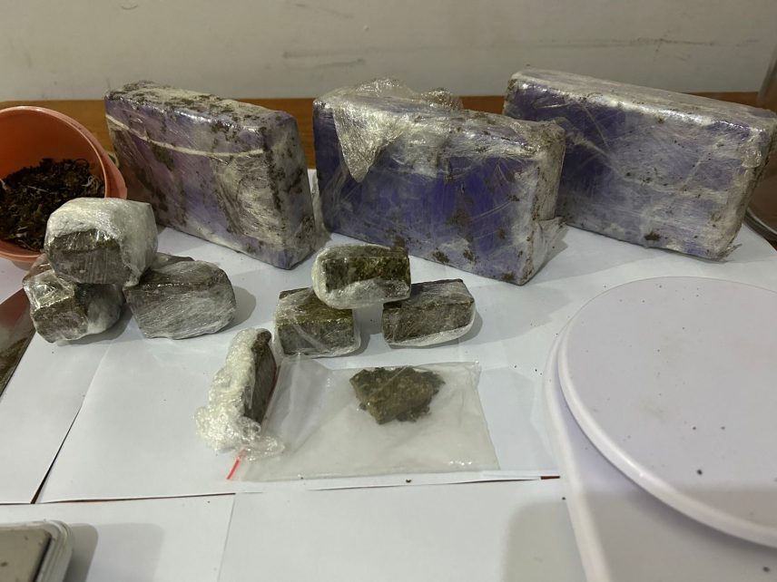 Durante vistoria no imóvel, os policiais localizaram oculto em um vaso de plantas 3 tabletes de substância análoga a maconha (pesando 1.225 gramas), e no interior da residência vieram a localizar 143 gramas de maconha fracionadas prontas para venda, 2 balanças de precisão, 2 rolos de papel filme, 1 faca com resquícios da substancia, 3 potes de vidro utilizado para o armazenamento do entorpecente, diversos sacos plásticos para fracionar a droga.