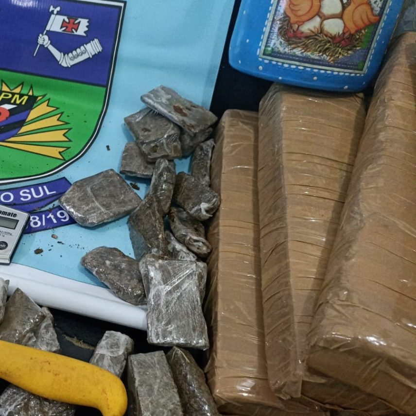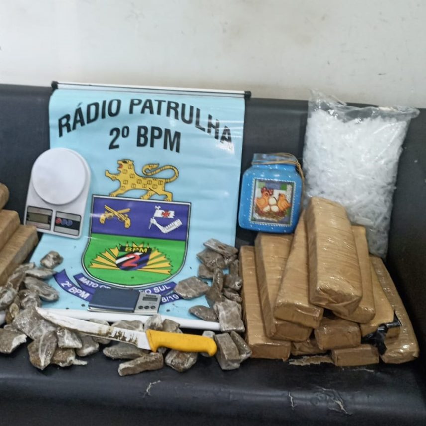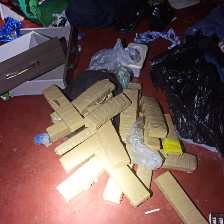 Três Lagoas (MS) – Sexta-feira (13/01), a equipe policial de Rádio Patrulha após denúncia via 190, deslocaram até uma residência localizada na área sul da cidade, onde segundo informações, haveria o consumo e o comércio de entorpecentes. Ao chegar à residência, a Guarnição PM adentrou ao local através do portão que estava destrancado e a porta do fundo aberta. Foi localizado em um dos quartos, dentro de um guarda-roupas, vários tabletes de uma substância esverdeada aparentando ser maconha.