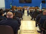 Três Lagoas (MS) – Na manhã de ontem (13), por volta das 7h30, o comandante do 2º Batalhão de Polícia Militar, Major Ênio de Souza Soares, se reuniu com os policiais durante a realização da formatura geral que aconteceu no Plenário da Câmara Municipal dos Vereadores, a formatura contou com a presença do Vereador Sargento Rodrigues.