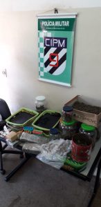 DOURADOS (MS) – Na manhã do último domingo (25) por volta de 09:00horas, Policiais Militares da 9ª Companhia foram acionados para atender uma ocorrência de perturbação do sossego na região do bairro Alvorada. O informe relatava que em uma casa na rua Antônio Spoladore, bairro Alvorada, havia uma aglomeração de jovens que ouviam som alto e o local ainda seria usado para venda e consumo de drogas, bem como, que o responsável da venda e distribuição de drogas seria um homem conhecido como “Japonês”. No local a equipe policial constatou a perturbação, onde foi informado aos moradores que seria tomado os procedimentos que a lei determinava e seria encaminhado para delegacia o aparelho sonoro para os procedimentos de praxe, porém quando do recolhimento do aparelho de som policiais perceberam o forte odor de maconha que vinha de dentro da casa, então foi solicitado ao morador que acompanhasse a guarnição para averiguação da suspeita, momento que um dos autores, um homem de 23 anos de idade disse que era usuário, sendo que em seu quarto foi encontrado um “dichavador” com vestígios aparentando ser maconha. Ato seguinte, em buscas na casa, foram localizados diversos potes e embalagens de maconha, cocaína, haxixe, êxtase, cogumelo, LSD, sementes de maconha, caixas de papel seda, usados para o preparo do cigarro de maconha, maçarico para a fabricação de haxixe, assim como gás propano/butano, várias “bitucas” de cigarro de maconha, que segundo um dos autores usava as sobras para fabricação do haxixe, duas facas com vestígios de maconha, usadas para cortar e preparar a droga, e, no quarto dos fundos foi localizado um pode de vidro com uma porção de substancia esverdeada aparentando ser maconha. Diante do delito, toda a droga e instrumentos foram apreendidos, bem como os autores, dois homens de 23 anos de idade, um de 22 anos de idade e um de 30 anos de idade foram encaminhados para a delegacia e apresentados à autoridade competente para o procedimento que a lei determina.