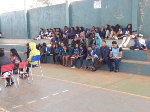 Na terça-feira (23) a equipe do PROERD palestrou para pais, mães e responsáveis dos alunos da Escola Municipal Polo Indígena Mbo Erenda Tupa’i Ñandeva, na Aldeia Limão Verde. O evento permitiu a apresentação do programa e a dinâmica das lições a todos os presentes e o tema principal foi a prevenção do uso abusivo de drogas, especialmente de bebida alcoólica.