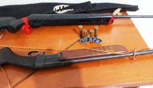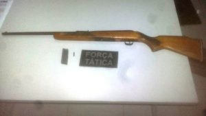 Já no distrito de Alto Caracol, foi apreendida uma arma de fogo. A Guarnição da Força Tática de Jardim deslocou até o distrito para verificar uma ocorrência, onde havia uma pessoa com lesão corporal, vítima de disparo de arma de fogo. No distrito, a guarnição se deparou com algumas testemunhas descrevendo e apontando o local dos fatos. Assim, de posse das informações, os policiais militares se deslocaram até o local, onde obtiveram êxito de encontrar a suspeita (36) e, assim, juntamente com a arma apreendida, uma espingarda calibre 22, foi conduzida a Delegacia Civil para registrar a devida ocorrência.