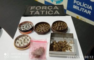 Em Nioaque, às 17h30min de sábado (10), uma guarnição de serviço encaminhou à Delegacia, dois adolescentes, de 16 anos, por porte de drogas. Dois gramas de maconha e um grama de pasta base de cocaína foram apreendidas.