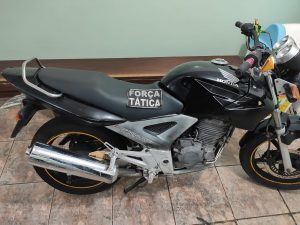 A equipe da Força Tática quando estava em policiamento ostensivo/preventivo visualizou dois indivíduos numa moto com a placa dobrada, que ao avistarem a viatura policial saíram em alta velocidade, fazendo manobras de “zigue-zague” na intenção de despistar a viatura, colocando em risco suas próprias vidas e de terceiros.