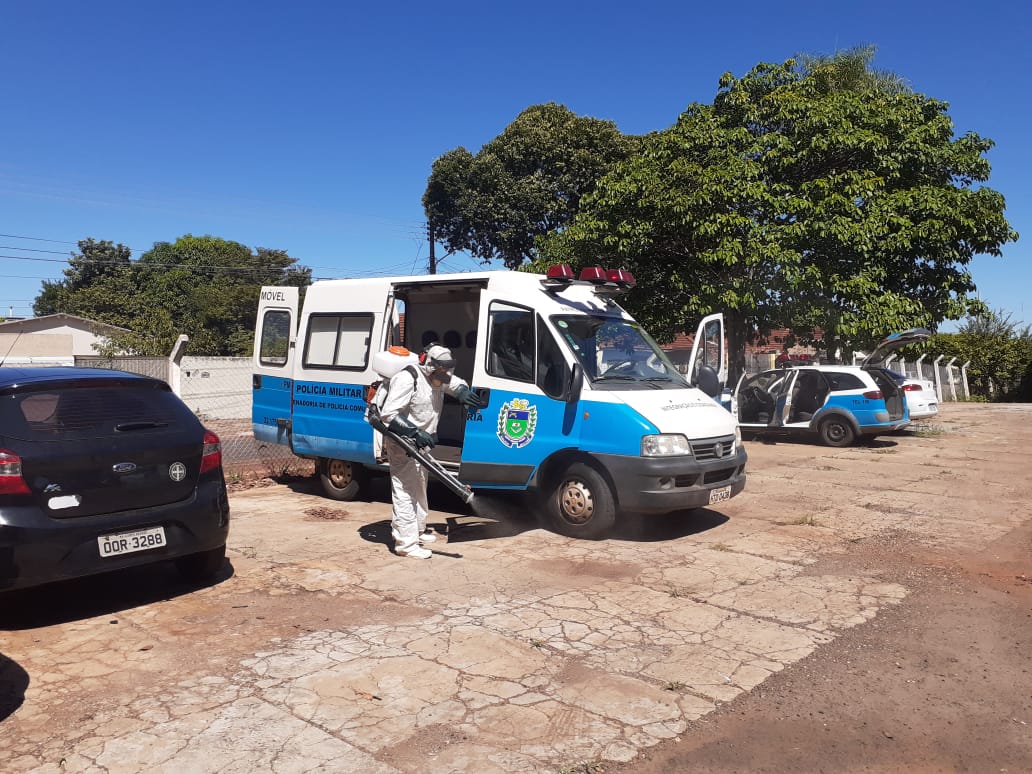 Durante o procedimento também foram desinfetadas todas as viaturas pertencentes à unidade e ainda na data de hoje será realizada a desinfecção do Pelotão de Terenos que também pertence a 5ª CIPM. O pelotão da Coophatrabalho já passou pelo procedimento e o pelotão da Vila Popular será desinfetado assim que terminarem as obras de reforma do prédio.