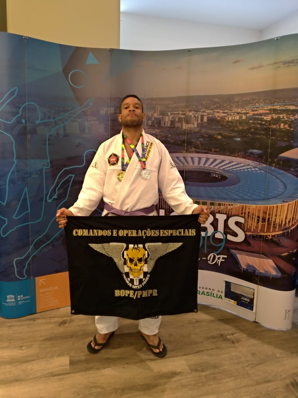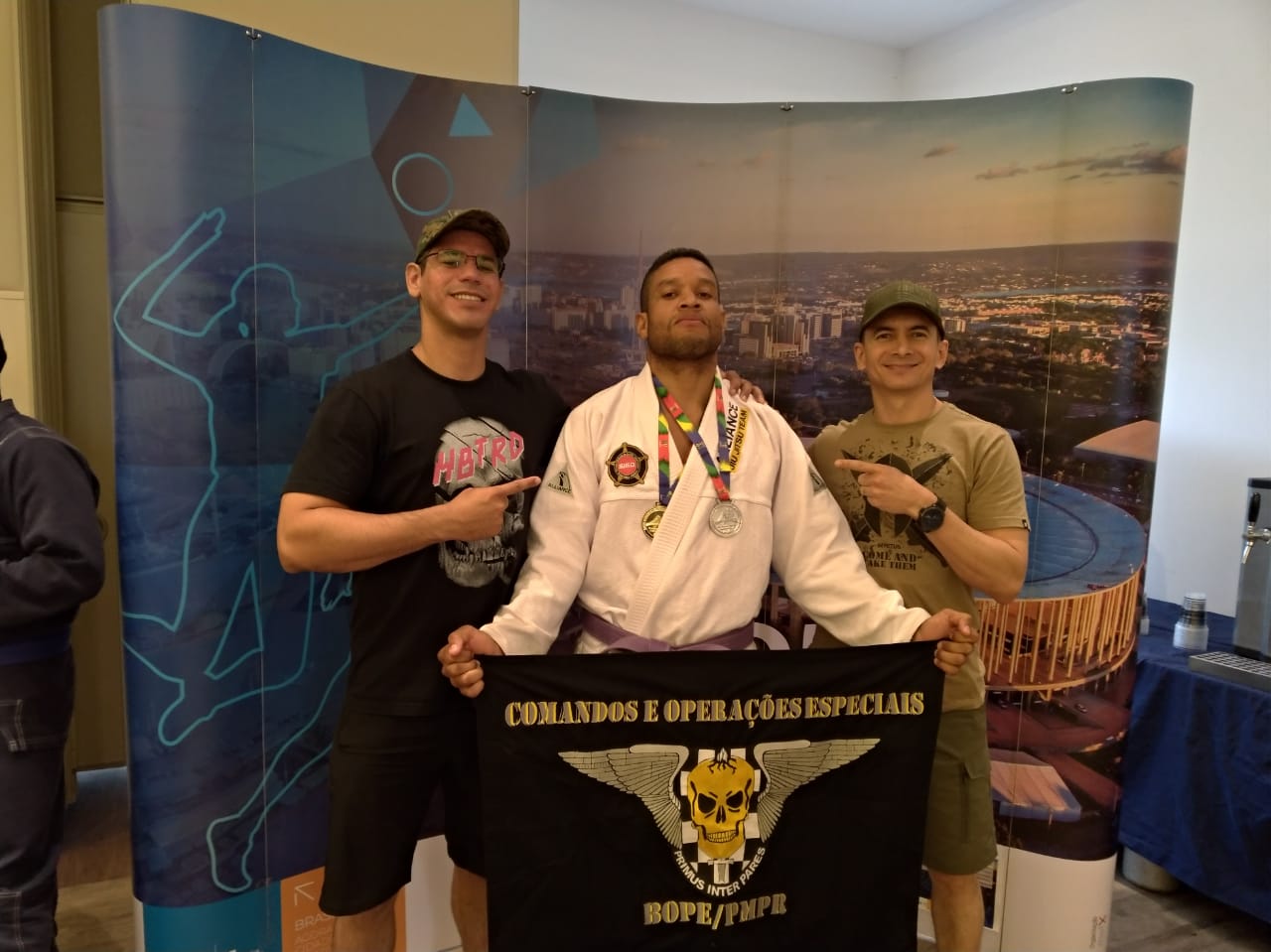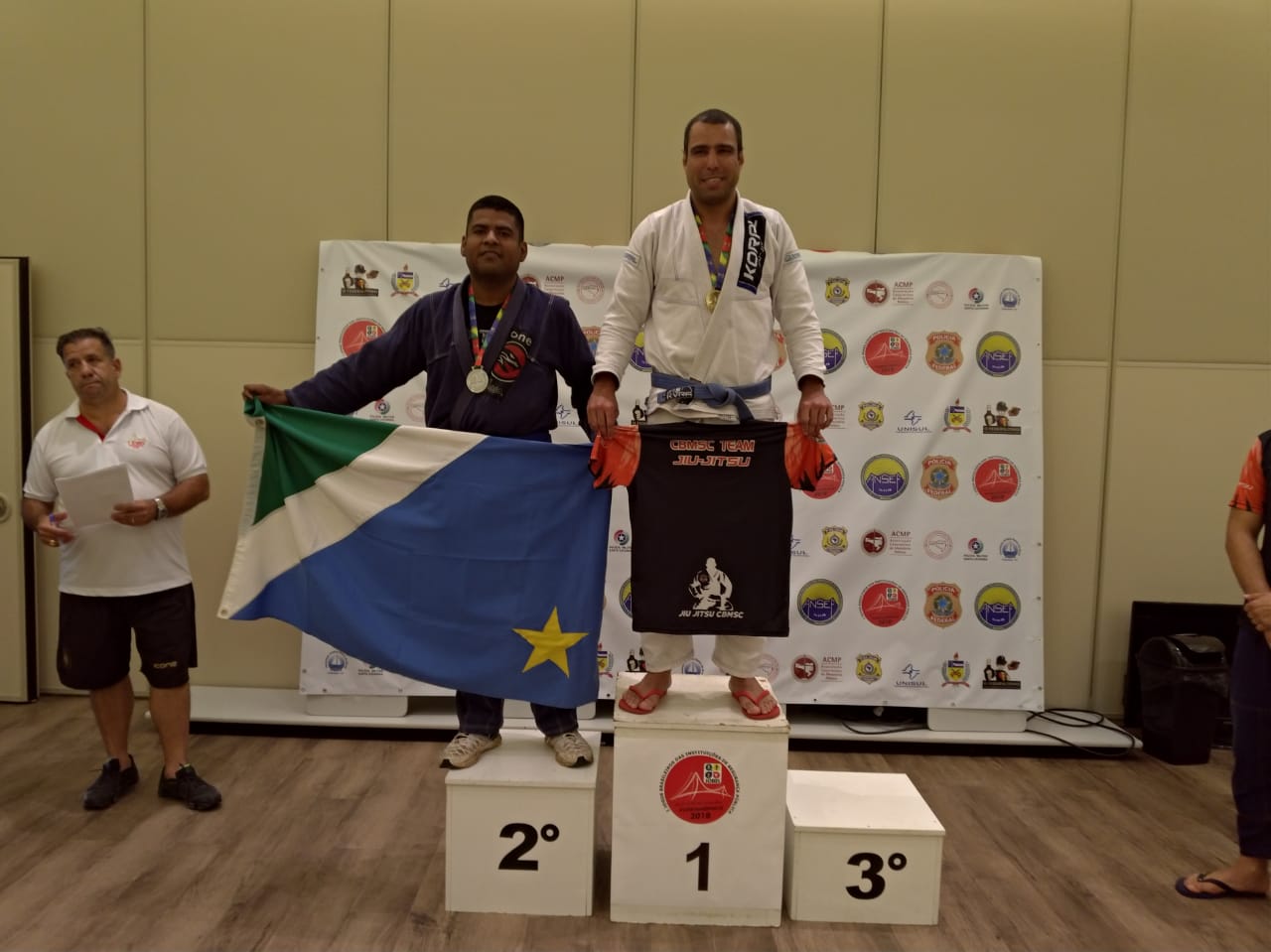 Categoria absoluto faixa roxa de jiu jitsu, o soldado PM Oliveira do 14º Batalhão de Polícia Militar, conquistou a medalha de prata na categoria absoluto faixa roxa de jiu jitsu, o cabo PM Gleilson, do 4º Batalhão de Polícia Militar – 4º BPM, conquistou a e medalha de prata na categoria até 90 kg (faixa azul) e o Sgt PM Douglas, da Ajudância Geral da PMMS, ainda na categoria de até 90 kg (faixa azul), garantiu a medalha de ouro.