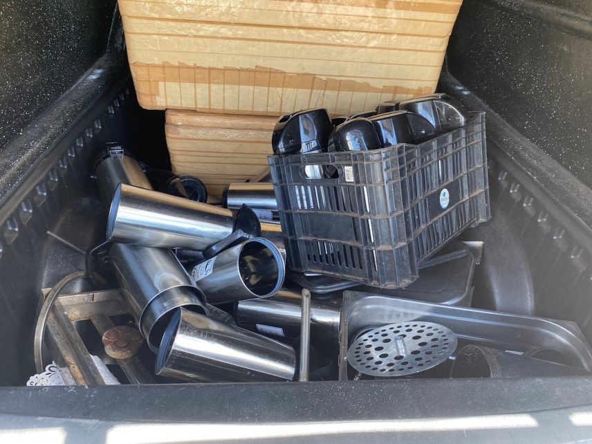 Durante vistoria no local onde o autor foi detido os policiais localizaram uma motocicleta Honda CG125/Titan, de cor prata, 30 garrafas Inox de 1.9 litros e 03 cubas de inox, os quais foram apresentados na delegacia de polícia juntamente com o detido, por se tratar de produto furtado.