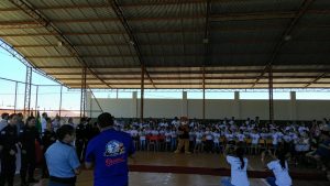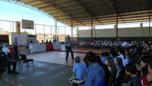 No evento, que aconteceu na quadra da Escola Municipal Inácio de Castro, 127 alunos fizeram o compromisso de se manterem longe de drogas e violência perante as famílias, professores e autoridades.
