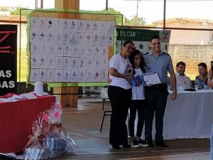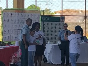 Na oportunidade o Comandante da 3ª CIPM e o Prefeito de Sete Quedas fizeram uma homenagem ao 1º Sargento PM Geraldo da Silva, reconhecendo o trabalho de 15 anos do referido militar a frente do PROERD e por ter incentivado novos militares, como a instrutora de Sete Quedas, Soldado PM Maria Clara Alcazar Ferreira, a dar continuidade ao programa na área da 3ª Companhia.