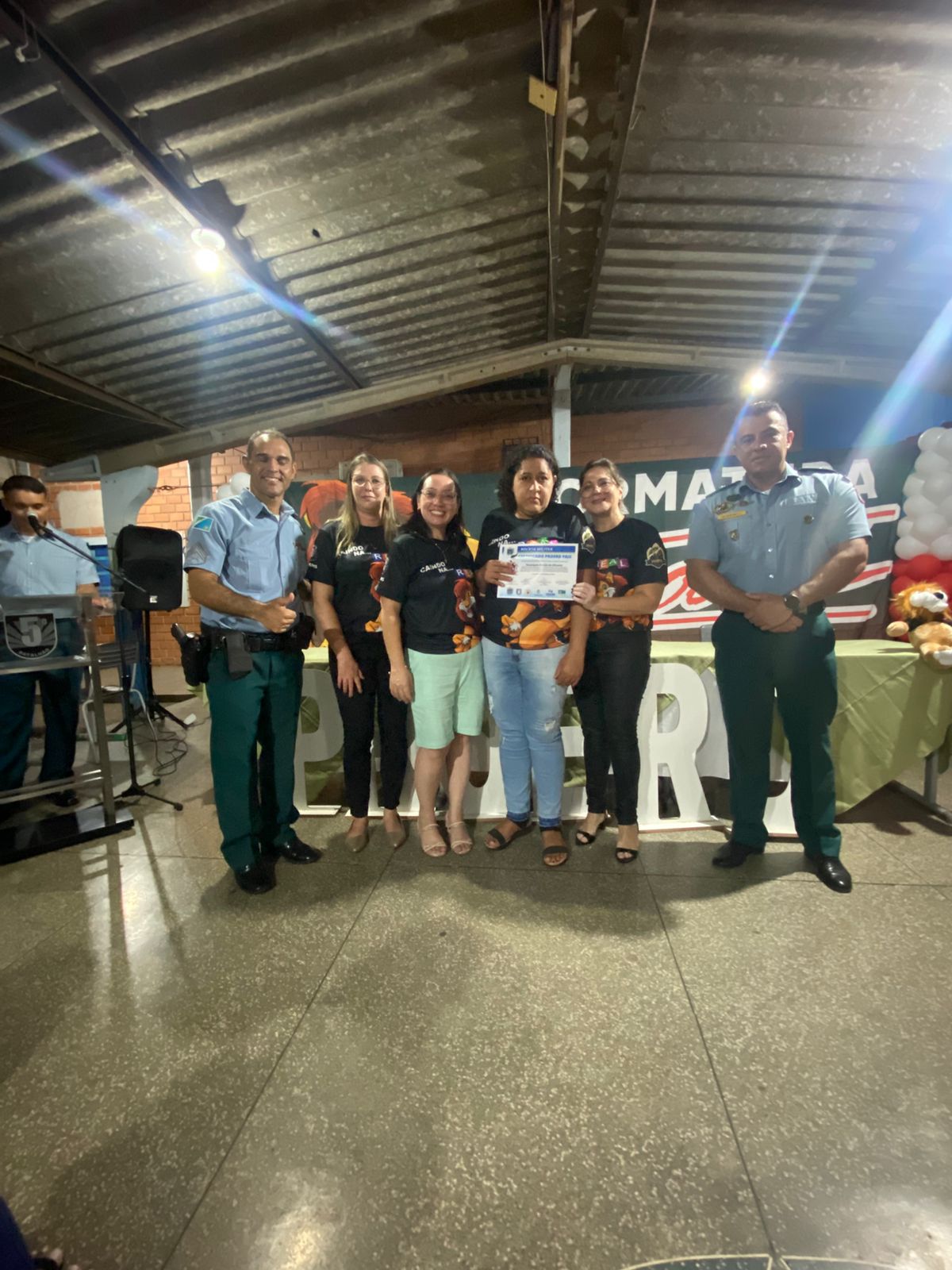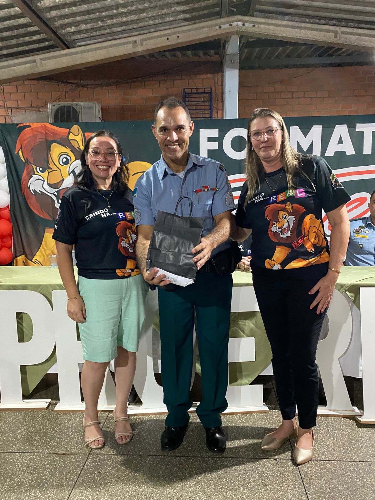 Também prestigiaram a formatura o Tenente José Manoel Ferreira de Melo, o vereador Ademir Peteca, a diretora da escola, Juliana Tachholke, e a coordenadora Riane Lúcia Martins de Gois.