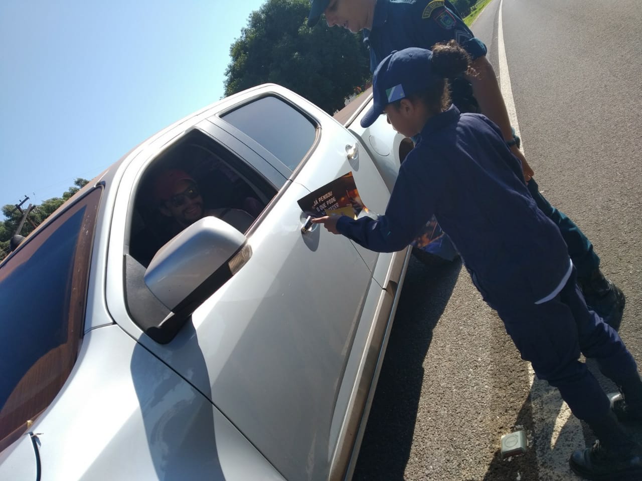 Jardim (MS) – Ontem (30), a Polícia Militar e os alunos do Projeto Patrulha Mirim do distrito de Boqueirão realizaram uma blitz educativa em alusão ao Movimento Maio Amarelo 2019. O cabo PM Thiago Henrique Farias Peixoto, instrutor do Projeto, acompanhou as crianças durante as atividades.