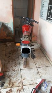 As motocicletas já estavam com várias peças desmontadas. Foram localizados e apreendidos pelos policiais um tanque, de cor vermelha, da motocicleta de propriedade do autor, dois bancos, uma rabeta traseira, três carenagens laterais e 11 chaves utilizadas na montagem/desmontagem.