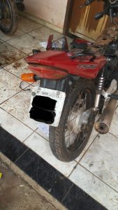 As motocicletas já estavam com várias peças desmontadas. Foram localizados e apreendidos pelos policiais um tanque, de cor vermelha, da motocicleta de propriedade do autor, dois bancos, uma rabeta traseira, três carenagens laterais e 11 chaves utilizadas na montagem/desmontagem.