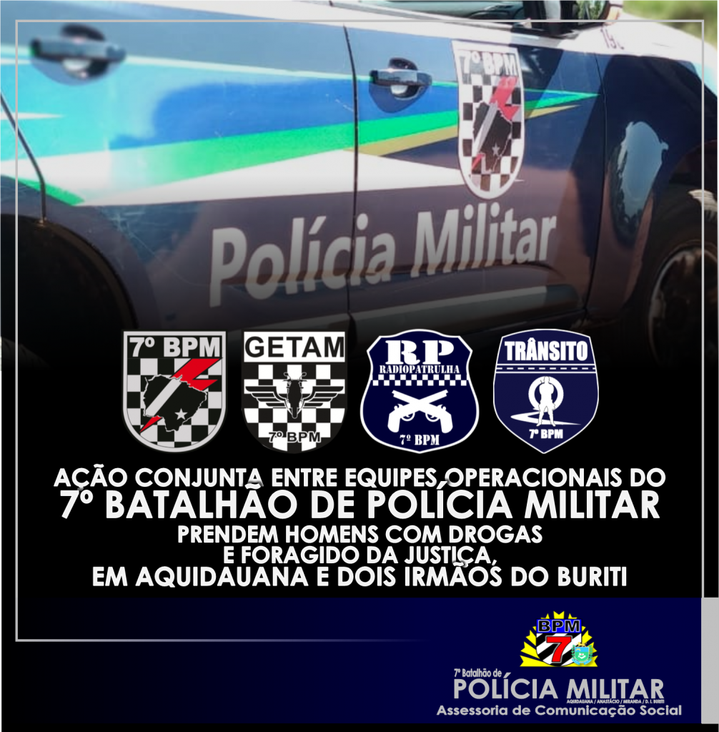 Polícia Militar em Aquidauana e Dois Irmãos do Buriti prendem indivíduos por tráfico de drogas e foragido da justiça