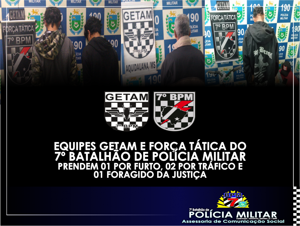 Aquidauana (MS) – Três pessoas foram presas e uma apreendida, após terem praticado crimes e ato infracional na região de Aquidauana. A desarticulação dos atos foi realizada pelas equipes de Força Tática e do GETAM do 7º Batalhão de Polícia Militar.
