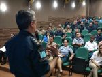 Em seguida, todos os presentes tiveram a oportunidade de ouvir uma palestra ministrada pelo Tenente-coronel PM Dominoni, sobre o Programa que já é sucesso não só no Estado de MS, mas em todo o Brasil, dado o seu alcance e resultados satisfatórios em prol do bem-estar das mulheres vítimas de violência.