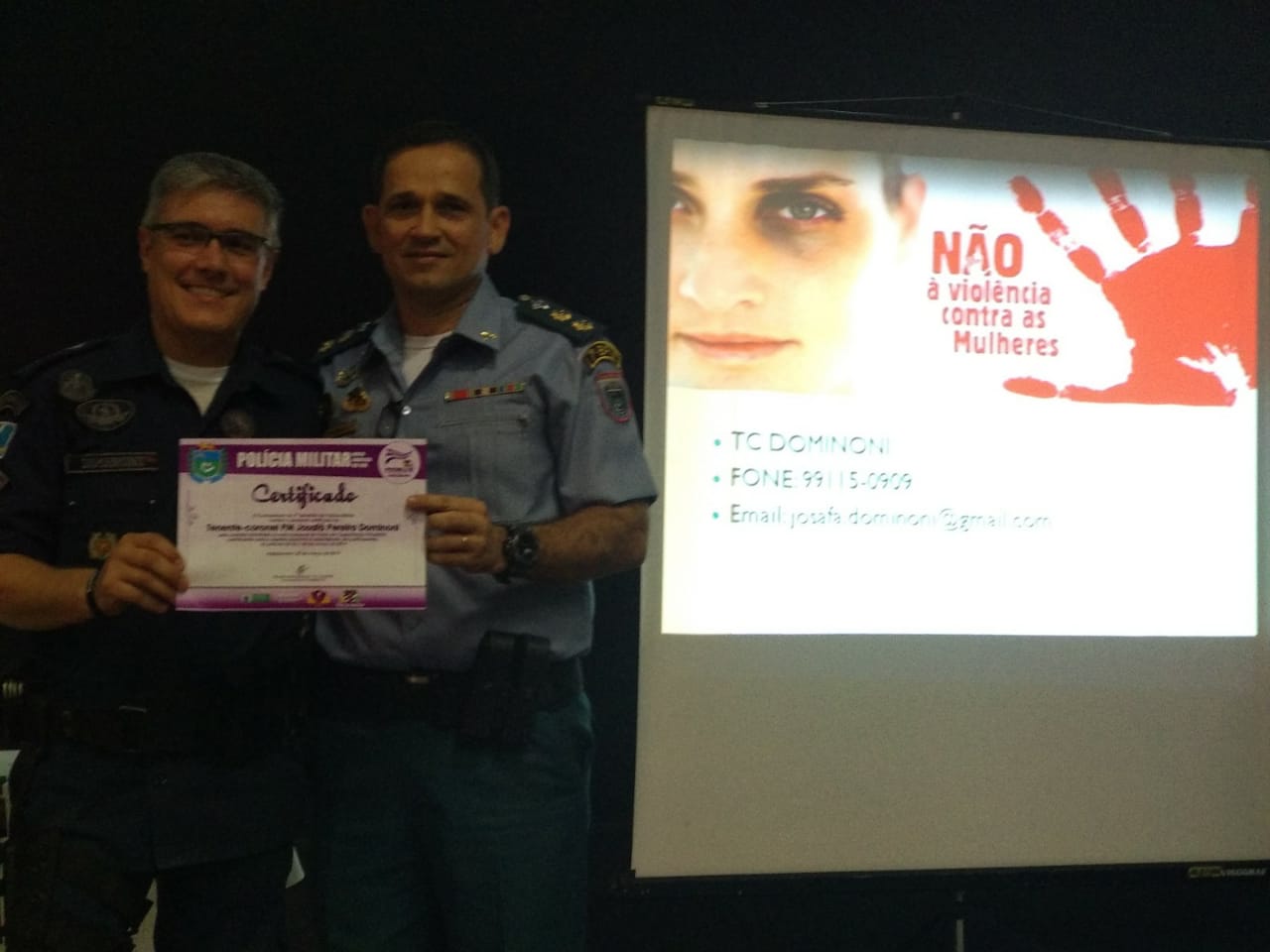 Em poucas palavras, o Comandante do 7º Batalhão PM agradeceu a presença de todos, evidenciou a importância do curso e celebrou o apoio dos amigos e instrutores. Na oportunidade, o Tenente-coronel Amaral ainda fez questão de entregar um Certificado de Agradecimento e parabenizar seu amigo, Tenente-coronel PM Dominoni (Coordenador do Programa PROMUSE e do evento em tela), pelo belíssimo trabalho em prol da defesa, proteção e segurança do público feminino.