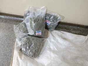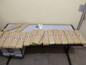Durante a busca no compartimento de carga, os policiais localizaram 18 tabletes de maconha, que totalizaram 20,700 kg, e cinco sacos de Skank, contendo 2,766 kg da droga. Em seguida, foi realizada a busca pessoal nos indivíduos e localizado no bolso do passageiro, de 27 anos, uma porção de cocaína, de 51 gramas, e outra de haxixe, de 59 gramas.