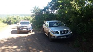 Dando seguimento a ocorrência a Polícia Militar recebeu informações que os dois meliantes envolvidos no roubo da caminhonete Nissan Frontier em Chapadão do Sul/MS, teriam adentrado em um residencial de ranchos de pesca as margens do rio Sucuriú, zona rural de Paraíso das Águas.