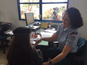 A visita foi agendada pela própria mãe na semana anterior e Ester veio conhecer as instalações do quartel da Policia Militar.