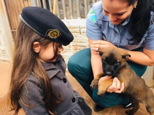 A decidida Ester tem apenas 06 (seis) anos, mas já está empenhada em ser Policial Militar quando crescer. “eu vou ser policial como vocês…” disse ela ao comandante do 3º BPM Tenente-Coronel PM Carlos Silva que a recebeu durante a visita.