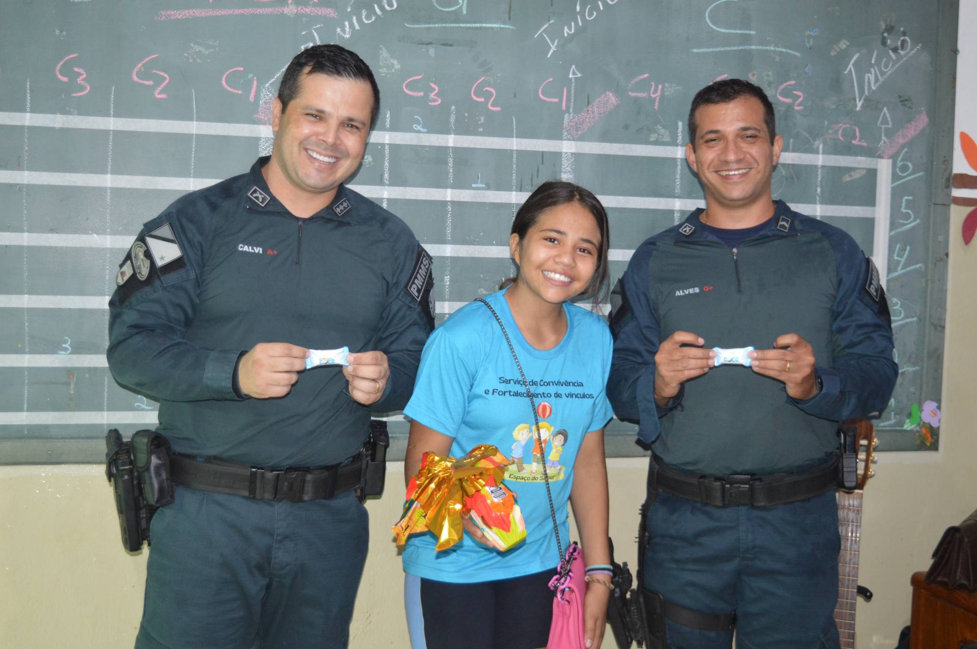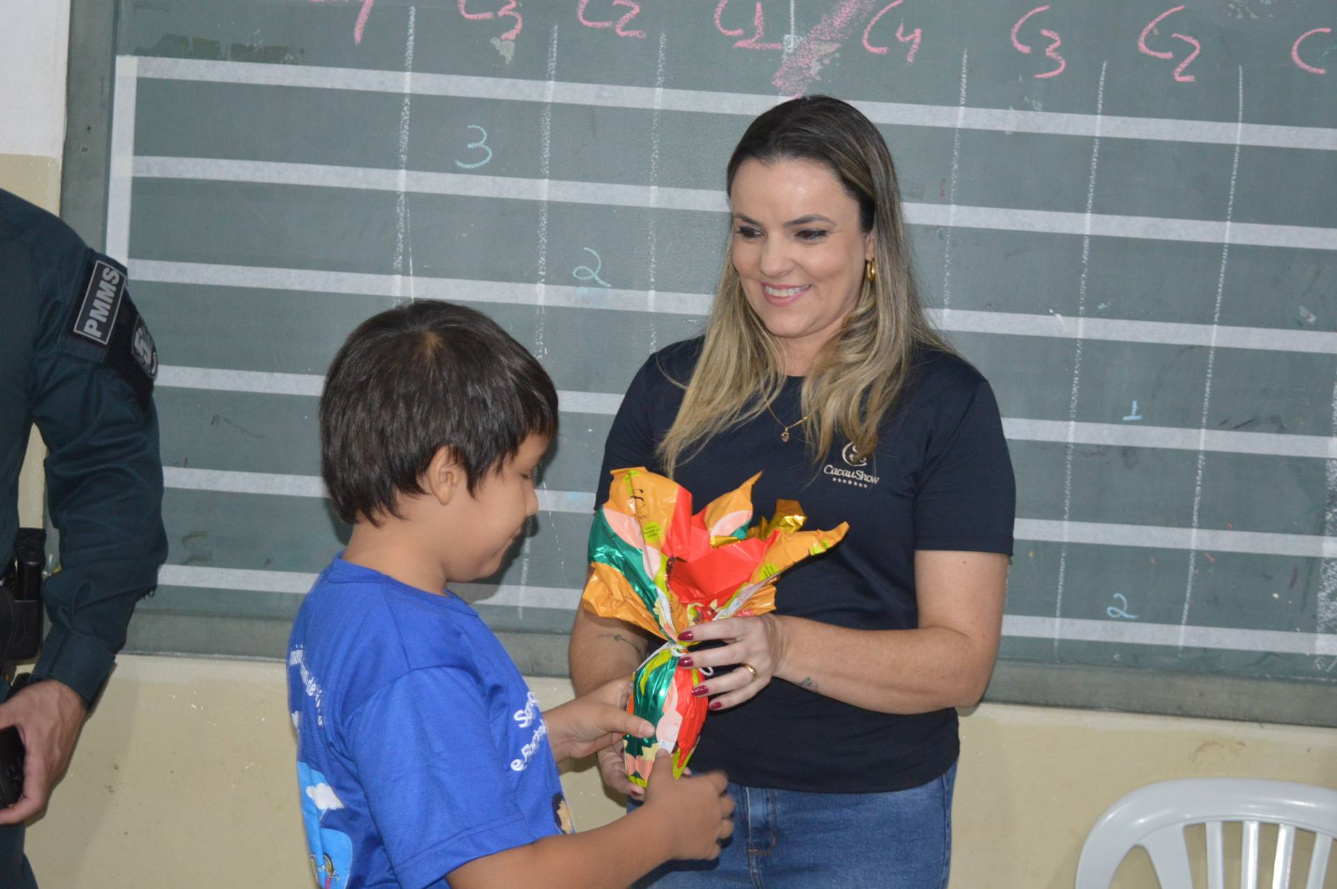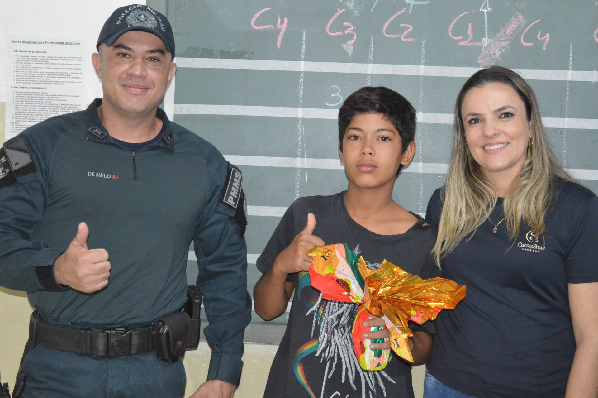 O subcomandante do 5º Batalhão de Polícia Militar, capitão Naercio Calvi Cardoso, esteve presente durante a ação e agradeceu à empresária Dalila Dutra Coletto, responsável pela franquia local da Cacau Show, pela parceria que tornou possível esse momento especial.
