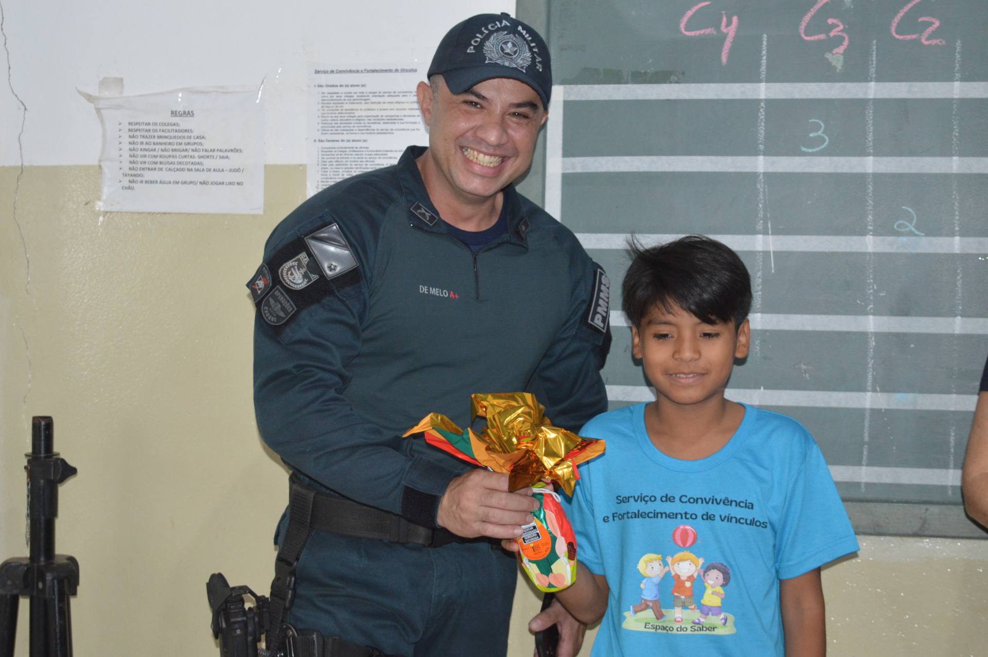 Coxim (MS) – Em uma ação solidária, a Polícia Militar, em parceria com a franquia da Cacau Show, realizou na manhã desta quarta-feira (16/04) a entrega de ovos de Páscoa para crianças e adolescentes atendidos pelos projetos sociais no Espaço do Saber em Coxim.