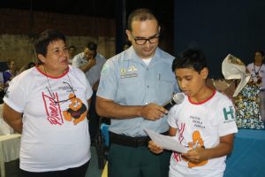 O Comandante do 11º BPM, tenente-coronel Daniel, parabeniza a todos os envolvidos na execução desse importantíssimo Programa, em especial aos policiais militares, cabo Rios e cabo Olasar, os quais foram elogiados publicamente pelo Comandante durante a solenidade.