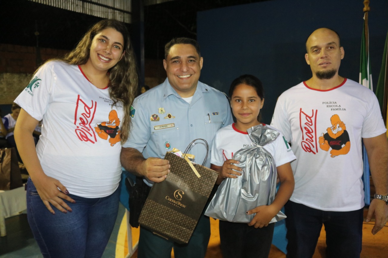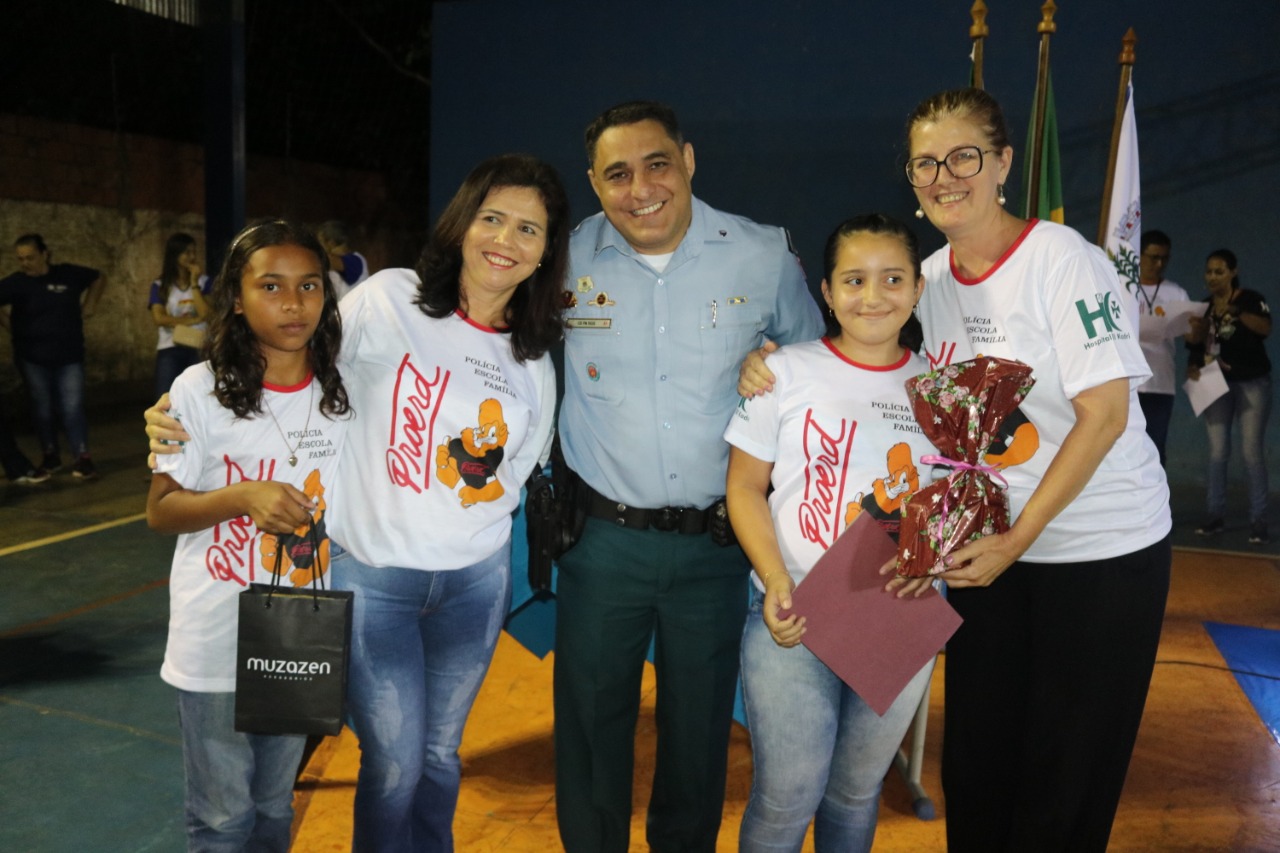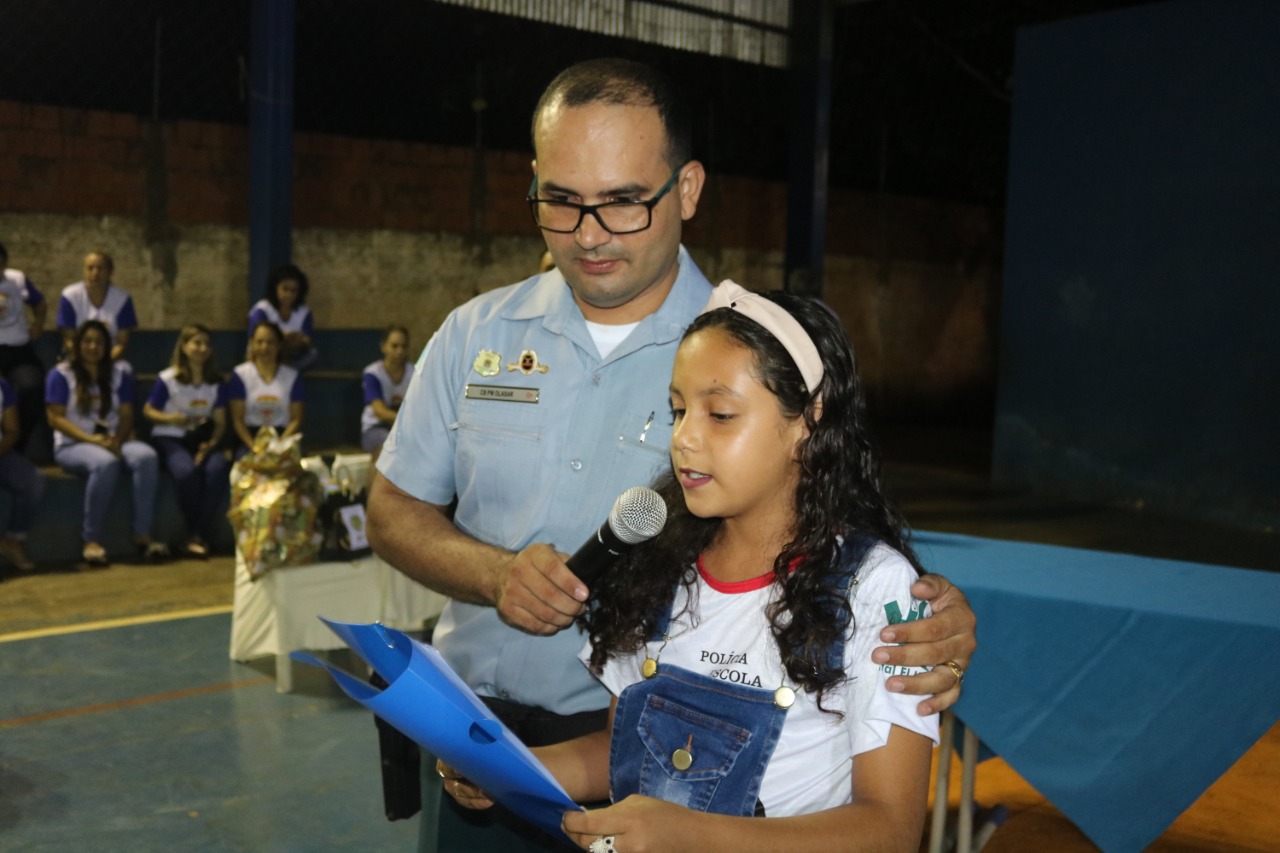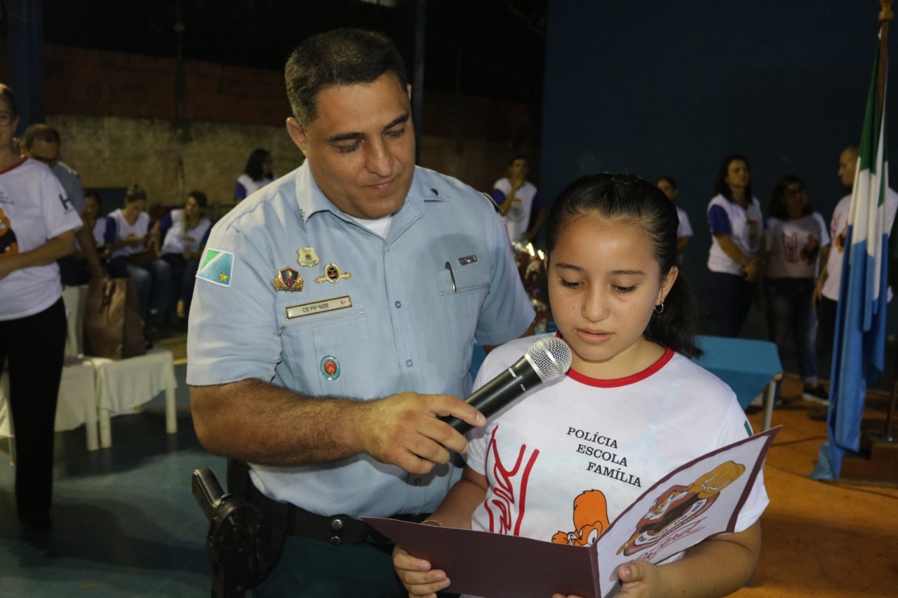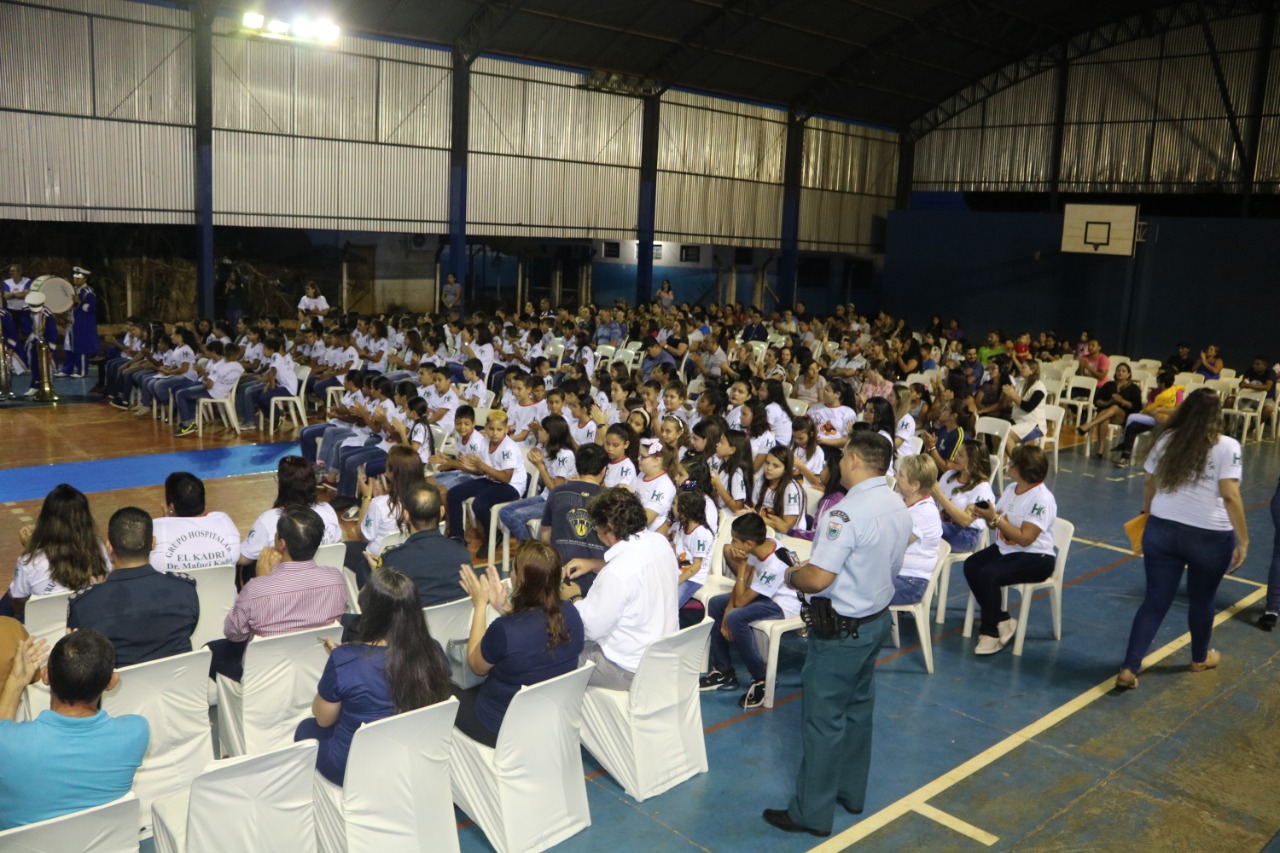 Jardim (MS) – Às 17h30 de ontem (13), foi realizada a Solenidade de Formatura do PROERD em Jardim. O evento foi realizado na quadra poliesportiva da Escola Municipal Major Alberto Rodrigues da Costa (MARC). O projeto, que atendeu e formou 260 alunos de sete escolas da Rede Municipal de Ensino (Zeus Benevides, Estácio Cunha Martins, Rufina Loureiro Caldas, Beracy Brunet Barbosa, Castelo Branco; Oswaldo Fernandes Monteiro e Major Alberto Rodrigues da Costa), esteve sob a coordenação dos instrutores: Cabo PM André Barbosa Rios e Cabo PM Antônio Carlos Olasar de Andrade, durante o ano letivo de 2019.