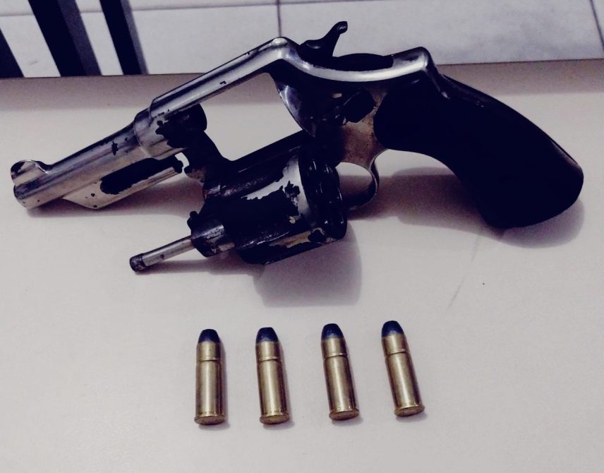 Durante diligências um dos autores veio a ser localizado em uma borracharia, localizada no cruzamento das avenidas Antônio Trajano com Baldomero Leitura, no bairro Jardim Morumbi, onde durante buscas foi localizado um revolver de cor prata (inoxidável) calibre .44 aparentando nº 661750, com 4 munições intactas.